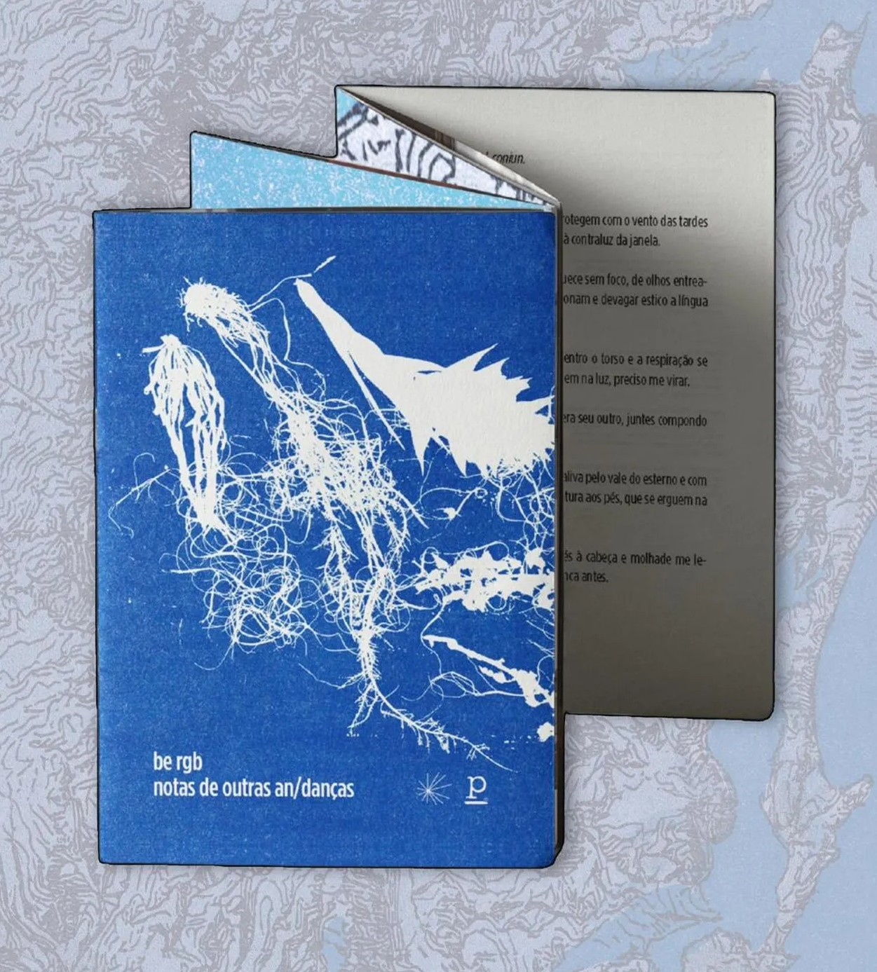 notas de outras an/danças, de be rgb, é um livro-objeto de processos alquímicos, formado por fragmentos que evocam as texturas, os cheiros e os sons do caminho, atento aos movimentos da natureza e do corpo. Os textos se desdobram como um mapa topográfico, sobrepondo as praias de Florianópolis, o vilarejo de Él Chaltén, na Patagônia Argentina, e as trilhas entre Curitiba e Quatro Barras, no Paraná. Aqui, autore-andarilhe percorre gêneros, paisagens e línguas, acompanhade de sua pesquisa sobre tradução e em diálogo com a escritora estadunidense Adrienne Rich.